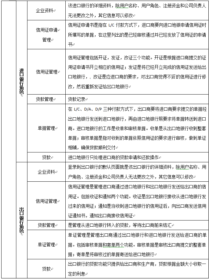 單(dan)證管理:單(dan)證管理是管理出(chu)(chu)口商(shang)通過出(chu)(chu)口地銀(yin)行(xing)和進口地銀(yin)行(xing)發送給進口商(shang)的單(dan)據。包括審核(he)單(dan)據和寄單(dan)兩個功能(neng)
