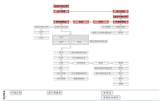 出口地(di)銀行:信用證通知書,交單,結匯,代款,還貸 供應商:起(qi)草(cao)內銷合同,收(shou)貨