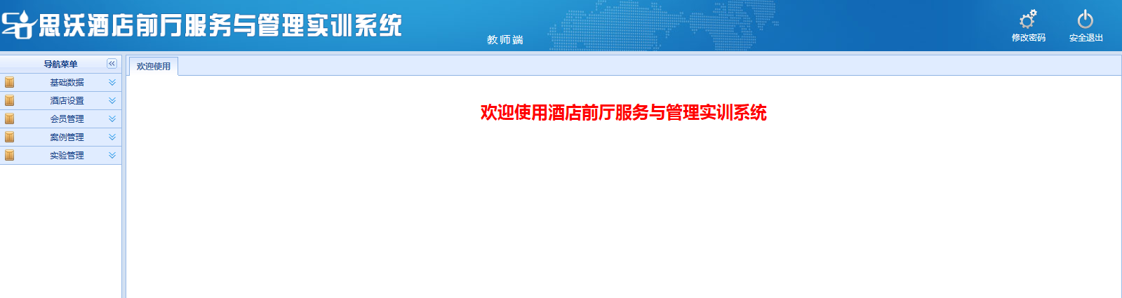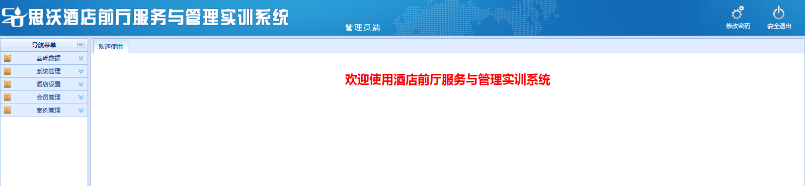 思沃酒(jiu)店(dian)前(qian)(qian)(qian)廳(ting)服務(wu)與(yu)管(guan)理(li)(li)模擬(ni)實(shi)(shi)訓平臺系統以(yi)學生(sheng)酒(jiu)店(dian)前(qian)(qian)(qian)廳(ting)工作崗位任務(wu)為(wei)基礎(chu),以(yi)案(an)(an)例動畫(hua)結合的(de)(de)模式開展情景(jing)模擬(ni)實(shi)(shi)訓,學生(sheng)可在該(gai)教學軟(ruan)件設置的(de)(de)虛擬(ni)酒(jiu)店(dian)環境中,完成預定(ding)、入住辦理(li)(li)、續住、退房、換房、會員管(guan)理(li)(li)、故(gu)障(zhang)報(bao)修、投訴處(chu)理(li)(li)、黑名(ming)單等相關案(an)(an)例任務(wu)的(de)(de)操作。該(gai)教學平臺軟(ruan)件可以(yi)逼真的(de)(de)體驗實(shi)(shi)際酒(jiu)店(dian)前(qian)(qian)(qian)廳(ting)工作的(de)(de)過程(cheng)。本公司為(wei)了更好滿足高校的(de)(de)教學需求,也會根據高校的(de)(de)需求提供酒(jiu)店(dian)管(guan)理(li)(li)實(shi)(shi)訓室解決(jue)方(fang)案(an)(an),