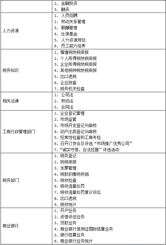 B、含蓋專(zhuan)(zhuan)業廣泛:平臺實(shi)現以崗位替代(dai)專(zhuan)(zhuan)業的(de)模式,有(you)企業管理者、銷售、采購、生產、人(ren)(ren)力(li)資源、財務(wu)人(ren)(ren)員、投融資、倉儲、外(wai)貿業務(wu)員、行政辦事人(ren)(ren)員等等幾十個崗位,融合的(de)專(zhuan)(zhuan)業有(you)企業管理、會計、工商(shang)管理、物流、金融、國際貿易等多個專(zhuan)(zhuan)業。